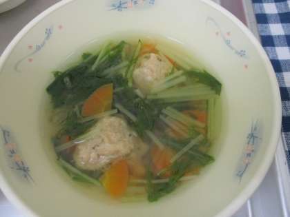 今日の給食も水菜とつみれのはりはり鍋のつみれは、給食室で手作りしています。とりひき肉とまぐろフレーク、しょうが、細ねぎをまぜて、給食室で一つ一つ丸めて作った、もちもちふわふわのつみれです。かむと口の中にじゅわ〜っとうま味が広がりました。