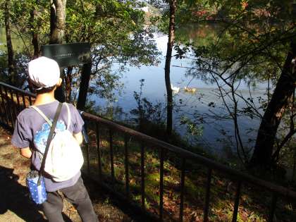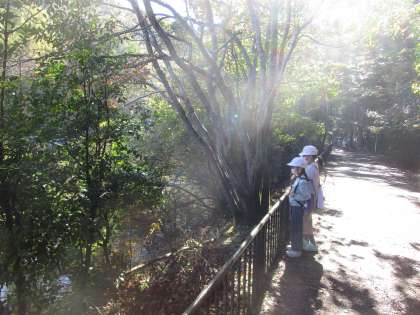 たてわり遠足で宝が池を一周めぐる間に、秋の景色を楽しんだり、宝が池に住んでいる生き物を見つけたりしながら歩きました。カモに話しかけていたり、紅葉している葉っぱを拾ったり、どんぐりを拾ったりしていました。ナップザックの中に拾ってきた子どもたちなりの「秋見つけ」が入っているので、おうちで一緒に見ながら感想を聞いてあげてください。