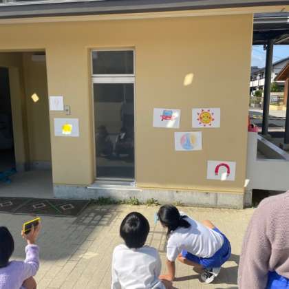 理科「太陽の光」では、手鏡を用いた的あてゲームをしました。「光を反射して的に当てることができたよ!」「友達と光を重ねることができた」「光が重なったところは明るいな、なんでだろう?」「日光がワープした!?どうやって光が進んだんだろう…」「ななめじゃない?」「まっすぐやろ〜」など気づいたことを出し合う中で、学習課題を立てました。次の時間からは「日光はどのように進むのだろうか」「日光を集めたときの明るさと温かさはどう変わるのだろうか」について調べていきます。