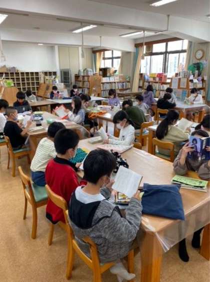 本が好きな子が多く、図書館での読書の時間を楽しみにしています。迷いながらどの本を読むか決め、とても集中して読書しています。