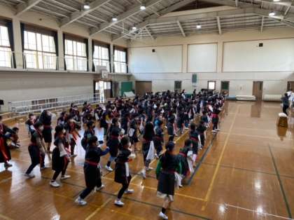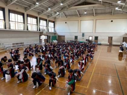 音楽発表会へ向けて体育館での練習がスタートしました。学年全体で踊るのは初めてでしたが、息をそろえておどりました。