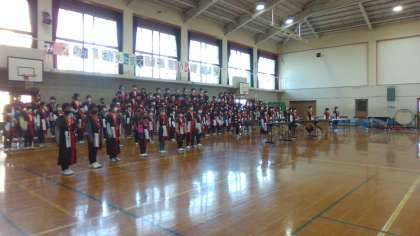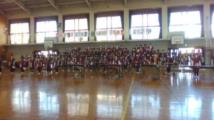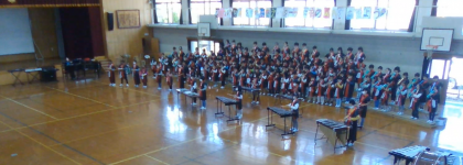 体育館で音楽発表会の練習を行いました。互いに音を聴き合い、リズムやテンポを合わせることを意識しました。強弱をつけ、よりよい音色が伝わるように頑張っています。