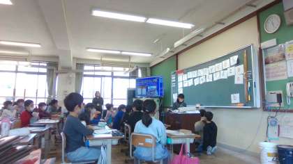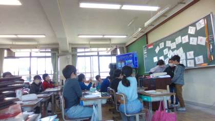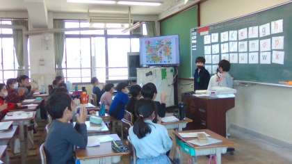 外国語活動「Alphabet」では、学習したことを使ってクイズを出し合いました。ミッシングゲームでなくなったアルファベットを探したり、好きなものクイズをしたりして盛り上がりました。