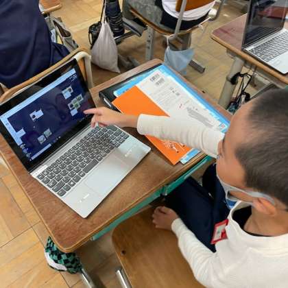 「すがたをかえる大豆」は、わたしたちの食生活にとっても身近な大豆が話題の説明文です。例の書かれ方に気を付けて読み,それをいかして「食べ物のひみつまき物」を書くことをゴールとして学習を進めています。前時では、段落を確認したあと、始め・中・終わりのまとまりに分けました。今日は「筆者である国分さんは、どうして具体例をこの順番で書いたのかな」というみんなの疑問を解決するために、ロイロノートを使って交流です。「わたしは色で分けてみたよ」「ぼくは、豆の形がどんどんなくなっていく順で分けたよ」と、自分なりに仲間分けして、考えました。
