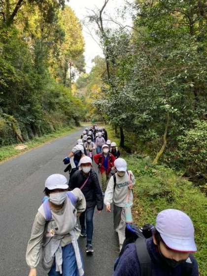 いよいよ小関越えです。「疏水は今どのあたりかな。」「疏水はトンネルに入ったから、土の中かな。」「すごく急な坂だけど、ここを工事してトンネルを作ったってすごいなぁ。」と言いながら、子どもたちは山道を頑張って歩いていました。