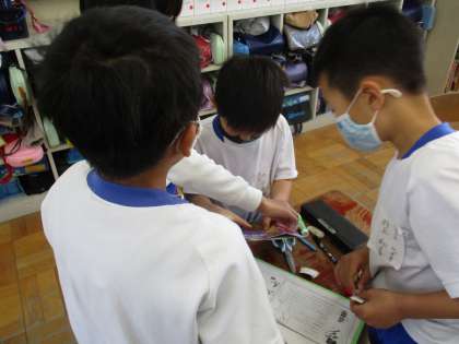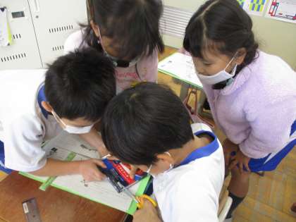 国語科の学習では「馬のおもちゃの作り方」という学習で説明文の書き方の学習を進めています。教科書の文の中から説明文の工夫を探して、説明文の書き方を知り、最後には、自分たちもおもちゃの説明文を書いていきます。今日の学習では、教科書の説明の分かりやすい部分や工夫して書かれている部分を探すために、実際に教科書を見ながら馬のおもちゃを作ってみました。「ここがわかりやすい」「この説明は難しい」など言いながら作っていました。