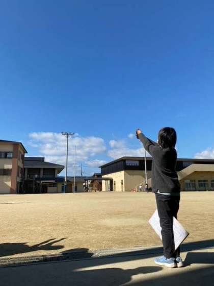 理科「星と月」では、半月の位置の変化と時間の関係を調べています。今日はとてもいいお天気だったので、月がよく見えました。「あ!位置が変わっている!」「形は変わっていないね。」「今日の夜にも月は出るのかな。」と、月を観察して気がついたことを話し合いました。
