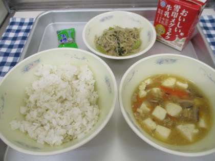 沖縄が復帰して50年ということで、沖縄から京都市のみなさんに、沖縄で作られた黒糖が届きました。さとうきびを煮つめてつくった黒糖はとてもあまかったですが、ほろにがい味もしましたね。(黒糖について、詳しくは11月の献立表に書いてあります)