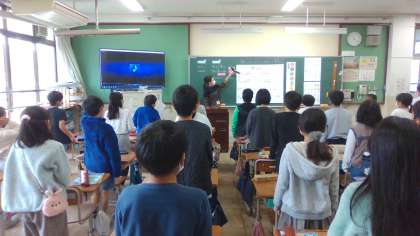 音楽科では「とんび」を歌いました。まずは範唱を聴き、曲想に合った歌い方を話し合いました。「とんびの鳴き声のところは、近くと遠くの空にとんびが飛んでいる様子を思い浮かべたので、1回目と3回目は強くがいいと思います。」「2回目と4回目は弱く歌って表現してみるのもいいと思います。」と言いながら工夫して歌いました。