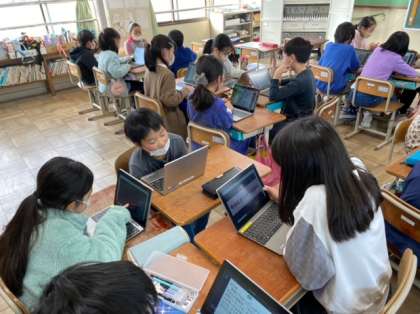 総合的な学習の時間「これからの岩倉」では、昔と今の岩倉を比べながらこれからの岩倉をどのようにしたらいいかについてまとめています。「昔から大切にされてきた岩倉史謠のように、これからも岩倉の伝統を受け継いでいきたい。」「昔から人と人のつながりは同じ。これからも岩倉も人と人のつながりを大切にしていきたい。」と、学習したことを子どもたちはまとめ、意見を交換していました。