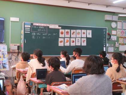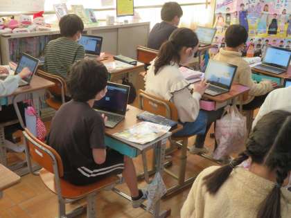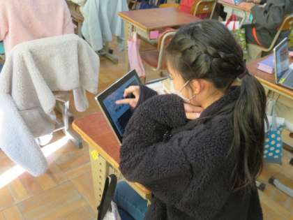 外国語科の学習で”What would you like?”という表現を使ってやり取りをする準備を進めています。子どもたちは上手にGIGA端末を使って英単語を調べたり,録音したりしていました。