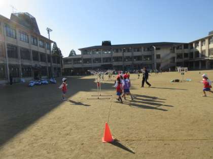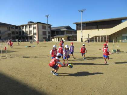 1年生は体育でパスゲームに取り組んでいます。