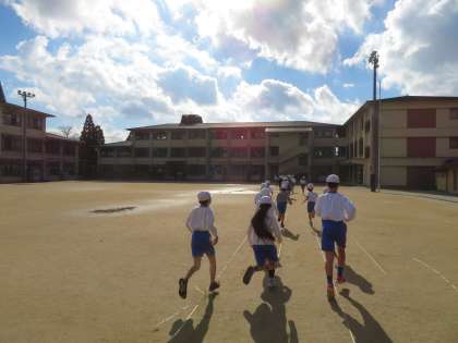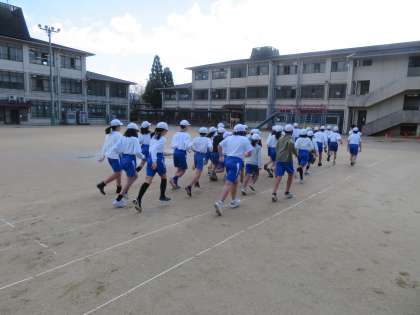 体育の学習でペース走を行っています。無理に走るというよりも,自分の体に合ったペースで走り切ることを目標に頑張ります。この学習を通して,健康的な体作りにも興味がもてるといいですね。