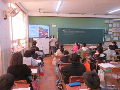 前回の学習で子どもたち同士が伝え合った内容を,各災害の中から代表を選出し,学級全体に向けて発表しました。プレゼン資料を使って発表する姿は,大人顔負けです。