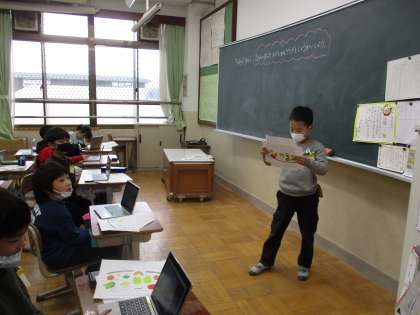 今日は、みんなが作ったサラダを発表しました。みんなそれぞれいろんな人のためにサラダを作っていました。友達のために作っていたり、先生のために作っていたり、自分のために作っていたりとさまざまありましたが、1番は「家族のためのいつもありがとうサラダ」が多かったです。みんな感謝の気持ちを込めて野菜を選んだようでとても微笑ましい発表になりました。