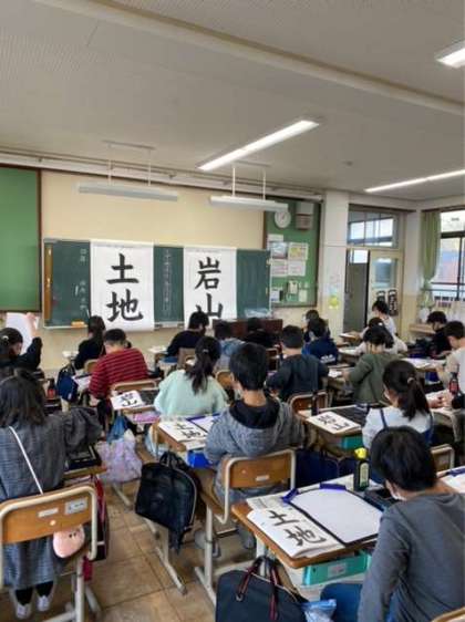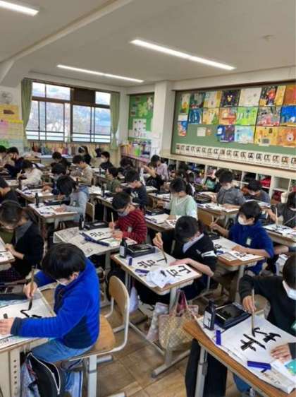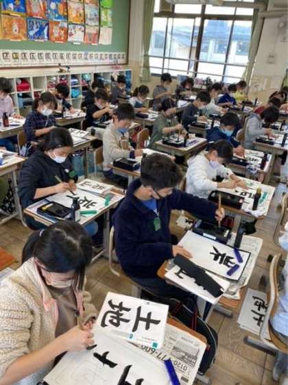 国語科書写では、文字の組み立てに気をつけて毛筆を行いました。上下の組み立てや左右の組み立てなど、どのように合わさっているのかを手本をよく見て、書きました。