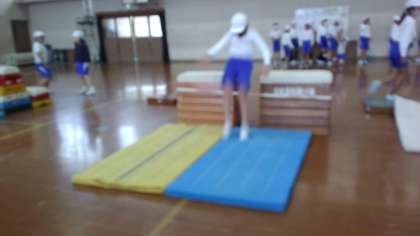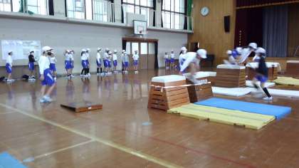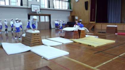 体育科「とび箱」では、今とべる技と新しい技に挑戦しています。まずは、練習の場で技ができるように練習し、確かめの場で練習した技の完成へ向けて挑戦しています。「ちょっとやり方がわかってきた!」「ふみ切りをバーンっと思いっきりすると勢いがついてうまくいくよ。」と、技のこつを見つけながら学習しています。