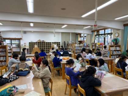 子どもたちは、読書の時間がだいすきです。図書館でどの本を読むのか迷いながら、興味のある本を手に取っていました。冬休みにも、いろいろな本を読むことに挑戦してほしいと思います。