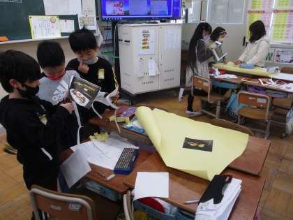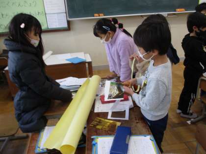 町探検に行って調べたことをもとにポスター作りを始めました。班のみんなでたくさんの意見を出しながらみんなが惹きつけられるポスターの題名を考えたり、写真の配置を考えたりしました。来週からはいよいよ本格的に書き始めます。みんなに伝わるポスター目指して頑張ってほしいです。
