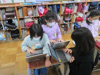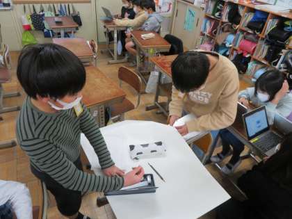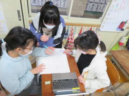 1月に行う防災週間に向けての準備を進めています。各グループで話し合って,役割分担をして取り組んでいます。