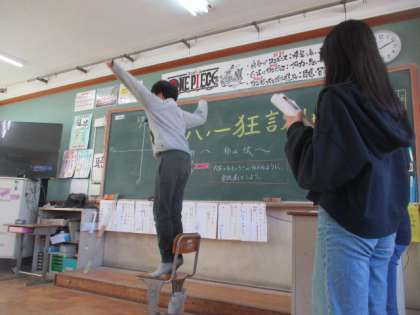 国語の学習「柿山伏」では,」音読劇をしました。山伏と柿の木の持ち主とに分かれて,表現豊かに大きく演じることに気を付けながら,練習しました。本番では,恥ずかしそうにしている子もいましたが,みんなうまくできてました。昔の人の物の見方を考える機会になりました。