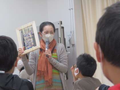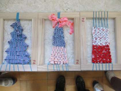 布を織ってみました。縦糸・横糸・・・。それぞれ個性豊かな織り方ができました。未来のアーティストが現れました。