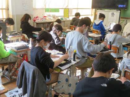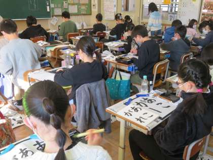 書写の学習で文字の配列に気を付けながら「あこがれ」という文字を書きました。今年の習字の学習はこれで終わりです。