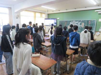 今日の1時間目はオンラインでの始業式でした。背筋を伸ばして聴いている様子から,3学期も頑張ろうという気持ちが伝わってきました。