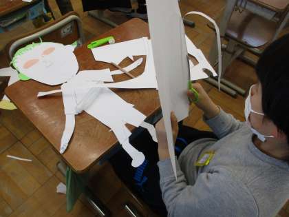 顔や体、足などさまざまななパーツが完成して、だんだんと版画の版が完成してきています。細かいところや周りのものを少しずつ修正して、またしっかりと動きが見えるようにしていこうと思います。
