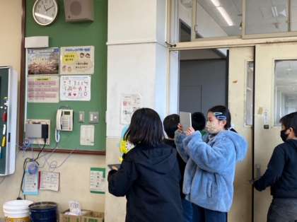 外国語活動「This is my favorite place.」では、学校の中のお気に入りの場所を英語を使ってしょうかいします。今日は、どんなことをこれから学習していくのか計画を立てたり、学校の中のお気に入りの場所の写真を撮りに行ったりしました。