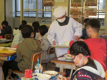 昨日から給食が始まりました。今年もしっかりとバランスよく食べて,心も体も健やかに過ごしてほしいと思います。子そもたちは,いつもおいしい給食が食べられることに感謝して,おいしくいただいていました。