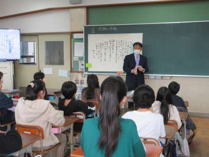今日の午前中に校長先生に授業をしていただきました。命のバトンという詩を紹介してもらい,改めて自分の命の大切さについて考える時間になったようです。最後に地域のお年寄りの方々に向けて手紙を書きました。