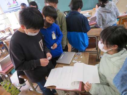 外国語の学習で,お買い物ごっこをしました。既習の表現を使ったり,わからない表現はジェスチャーを使ったりして,上手にやり取りをしていました。