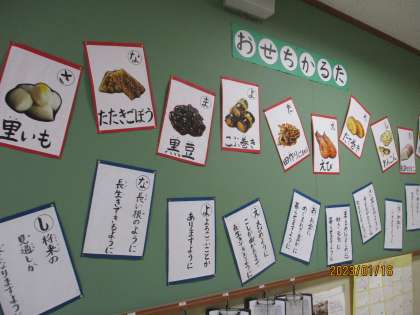 1月の掲示板は、「おせちかるた」です。