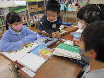 質問の仕方も練習し,いざ紹介タイム!好きな挿絵を見せたり,お気に入りの登場人物を教えたり,楽しそうに伝え合っていました。「この本読みたい!」と新たな興味も沸いたようで,休み時間に本を読み合ったりもしていました。ジャンルの違ういろいろな本に触れる機会になっていたら嬉しいです。