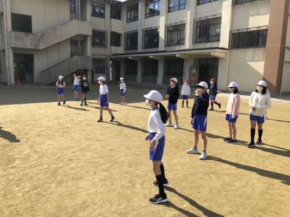 体育の学習で元気いっぱい体を動かしました。今日の学習ではボールを使った運動をしました。寒いですが,休み時間や放課後にも運動場に出て,元気に体を動かしましょう。