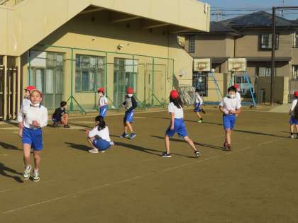 今日の体育の学習では,普段できないような鬼ごっこをしました。三つ巴の戦いに子ども達も大興奮でした。その後,フラフープを使った活動をしました。どのグループも心を一つにして頑張っていました。