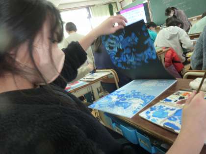 完成した人も徐々に増えてきました。一度刷っただけでは物足りず,重ね刷りをしてより高みを目指す姿も見られます。