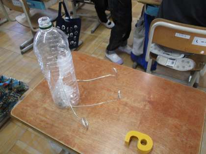 図画工作科の授業では、自分のなりたい職業のイメージに合わせた人形作りを始めました。2Lのペットボトルの中に砂利を入れた袋を入れた後、キリでペットボトルにか所に穴をあけ、針金を通して手足の形を作りました。今週は粘土で顔や手足を作って絵の具を塗っていきます。また絵の具セットを持たせていただくようよろしくお願いします。