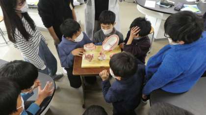 人間が,お母さんのおなかの中で育つ仕組みについて興味をもって熱心に話し合っていました。