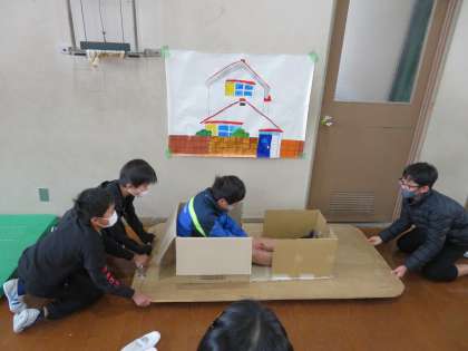 今日のお昼休みに,2組の防災フェスティバルがありました。体験コーナーやミニチュアの家,パンフレットの配布などがあり,見ている子も楽しそうにしていました。