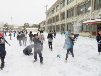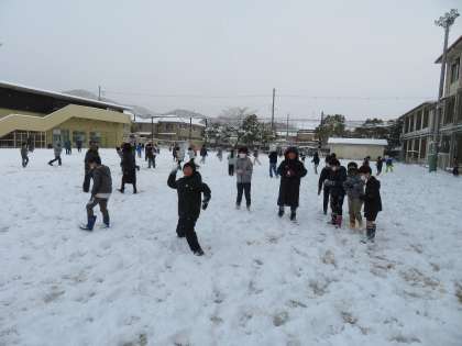 昨晩からたくさん雪が降り,本校のグラウンドにもたくさん雪が積もっていました。朝から子どもたちは大はしゃぎで,雪だるまを作ったり,雪合戦をしたりして,雪遊びを楽しみました。