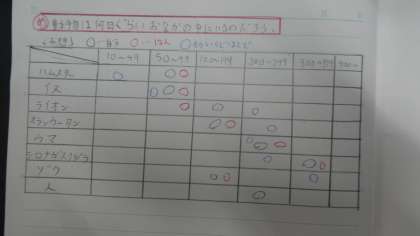 多くの児童が「体の大きな動物ほど,おなかの中にいる日数が多いのではないか。」と予想しました。