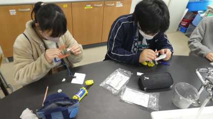 電熱線に電流を流すと発熱する性質を利用して,発泡スチロールカッターを作りました。