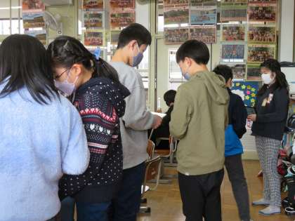 英語を使って道案内をしました。分からない表現はルイス先生に質問して,より分かりやすく道案内しようと工夫していました。