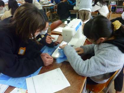 家庭科「ミシンにトライ!」の学習で、ミシンの使い方について学習しています。ミシンの各部の名前や基本的な操作を実際に見たり動かしたりしながら学びました。子どもたちは、エプロン作りを楽しみにしています。