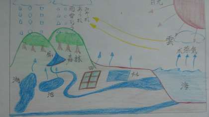 水が循環していることに初めて気付いた児童もいて,丁寧にノートに図を描いていました。