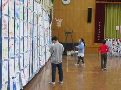 作品展の鑑賞をしました。自分たちの作品が飾られている様子を,子どもたちは嬉しそうな表情で見ていました。鑑賞のマナーを守って,静かに鑑賞を楽しんでいました。