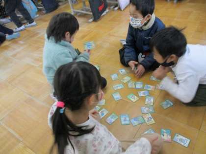 生活科の学習の時間に昔遊びのかるたをして楽しみました。