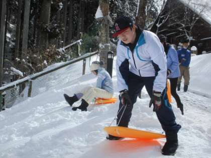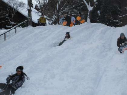 【6年】花背山の家 そり遊び